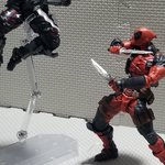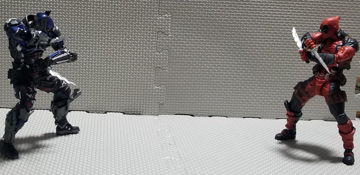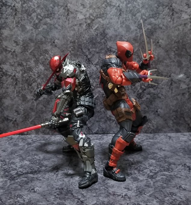#夜のフィギュア撮影会 お題『フリー』 #デッドプール vs #アーカムナイト 、デッド・オア・アライブ!! #リボルテック #リボルテックヤマグチ #マーベル #DC #フィギュア撮影友の会 #おも写