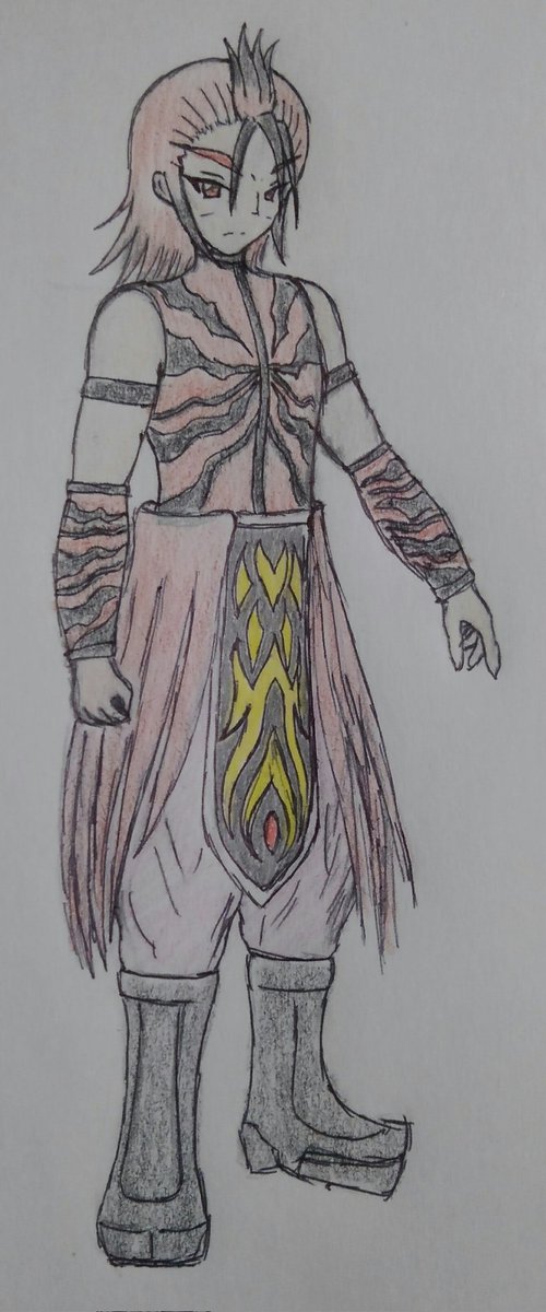 #イラスト #アークリオネ ミノーラ・カサゴニア モチーフ:ミノカサゴ ○海魔人ミノーラの本来の姿。生真面目な武人。 ○自分に厳しく日々の鍛練を怠らない、他人には優しく接する。ガガーネの兄で、妹の事を大事に思っている。 twitter.com/Akinari4447101…