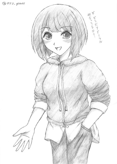 #艦これ版深夜の真剣お絵描き60分一本勝負 #艦これ版真剣お絵描き60分一本勝負_20220413 #アークロイヤル進水日 諸々私服をプレゼント。この時期のアークには白いシャツの上からパーカーを重ね着、下はテーパードパンツが似合うと思ってる。おめでとう!