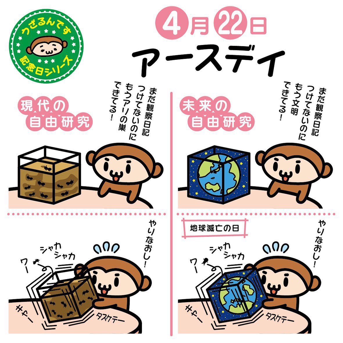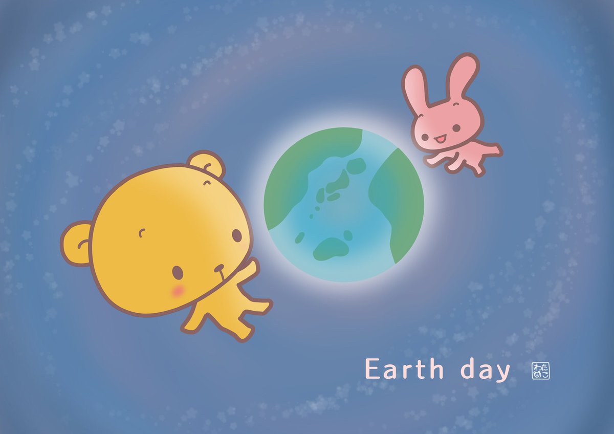 4月22日はアースデイ。今日は地球の環境問題などに対して関心を持ってもらうための記念日なんです。地球が誕生して約46億年たちました。現代は文明が発達して便利な世の中ですが、環境汚染や戦争なども心配ですね。滅亡しないように地球を大切にしようね〜 #アースデイ #イラスト好きさんと繋がりたい