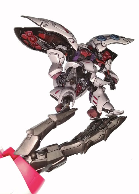 #アーティファクト #キュベレイ 続き 手乗りキュベレイが何か生き物の様で愛おしい。。。 にしても、色々面倒な子でしたわ。 ε-(´∀`; ) あとは、グフフとドムトロの線を描けば、、、 #ガンプラ好きとつながりたい