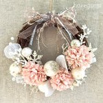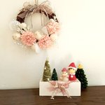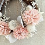 雪の結晶のフェルトボールとピンクマムでクリスマスリースになりました キラキラだけどあったかくて キラキラだけどふんわり優しい 大人っぽいけどかわいらしい なんだか不思議な仕上がりです minne.com/@hare-gumi #minne #羊毛フェルト #アーティフィシャルフラワー #ハンドメイド @minnecom