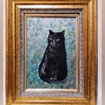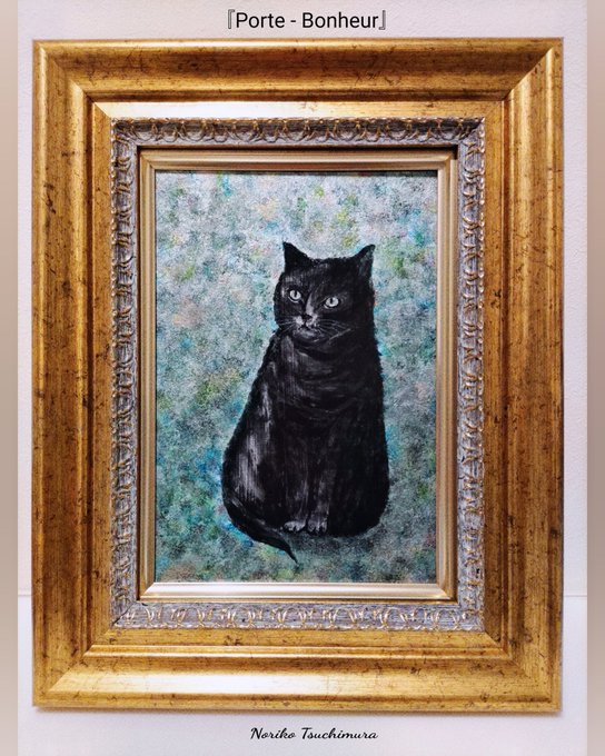 黒猫の絵、完成しました♪ タイトル『Porte - Bonheur(ポルト・ボヌール)』フランス語で、幸せを呼ぶものという意味です。 紆余曲折を経て、何とか額に納めることが出来ました。 10/13〜神戸阪急で開催される『アートな夜に100匹の猫』展に出展します🎶 #黒猫 #アートな夜に100匹の猫展 #アクリル画