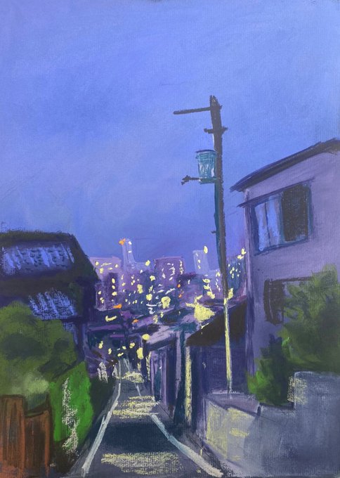 「目白台から都電・学習院下駅方面への急坂」パステル画 #パステル画 #パステル #アナログ #art #illustration #絵描きさんと繋がりたい #芸術の輪 #みんなで楽しむTwitter展覧会 #素朴画 #絵のある暮らし #アートのある暮らし #日常風景 #東京散歩 #水彩画 #透明水彩 #watercolor #風景画