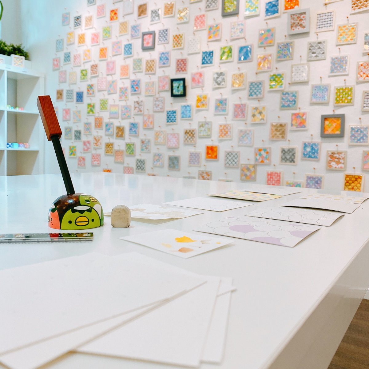 #アートカクテル #こつw個展 正しく並ぶわらわらはよく「パソコン?」と勘違いされますが、 全部作家が手で一個一個描きました。 会場内にも作家さんの作業台の模様を展示しています。 ぜひわらわらの原点から展示を楽しもう! 本日は19時まで。 art-cocktail.net/exhibit-event/…