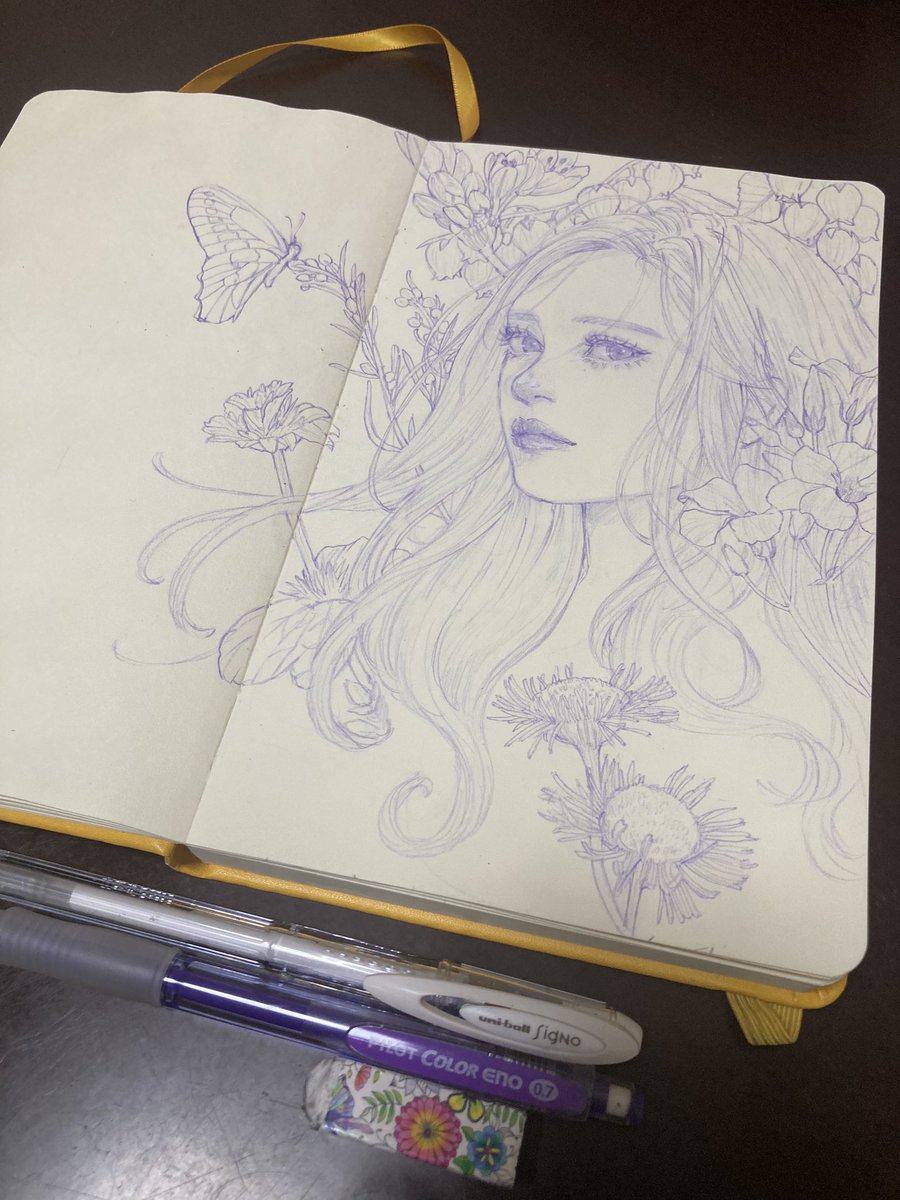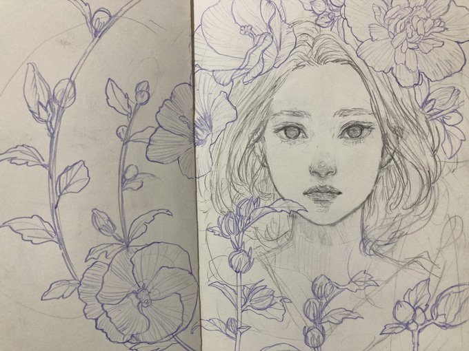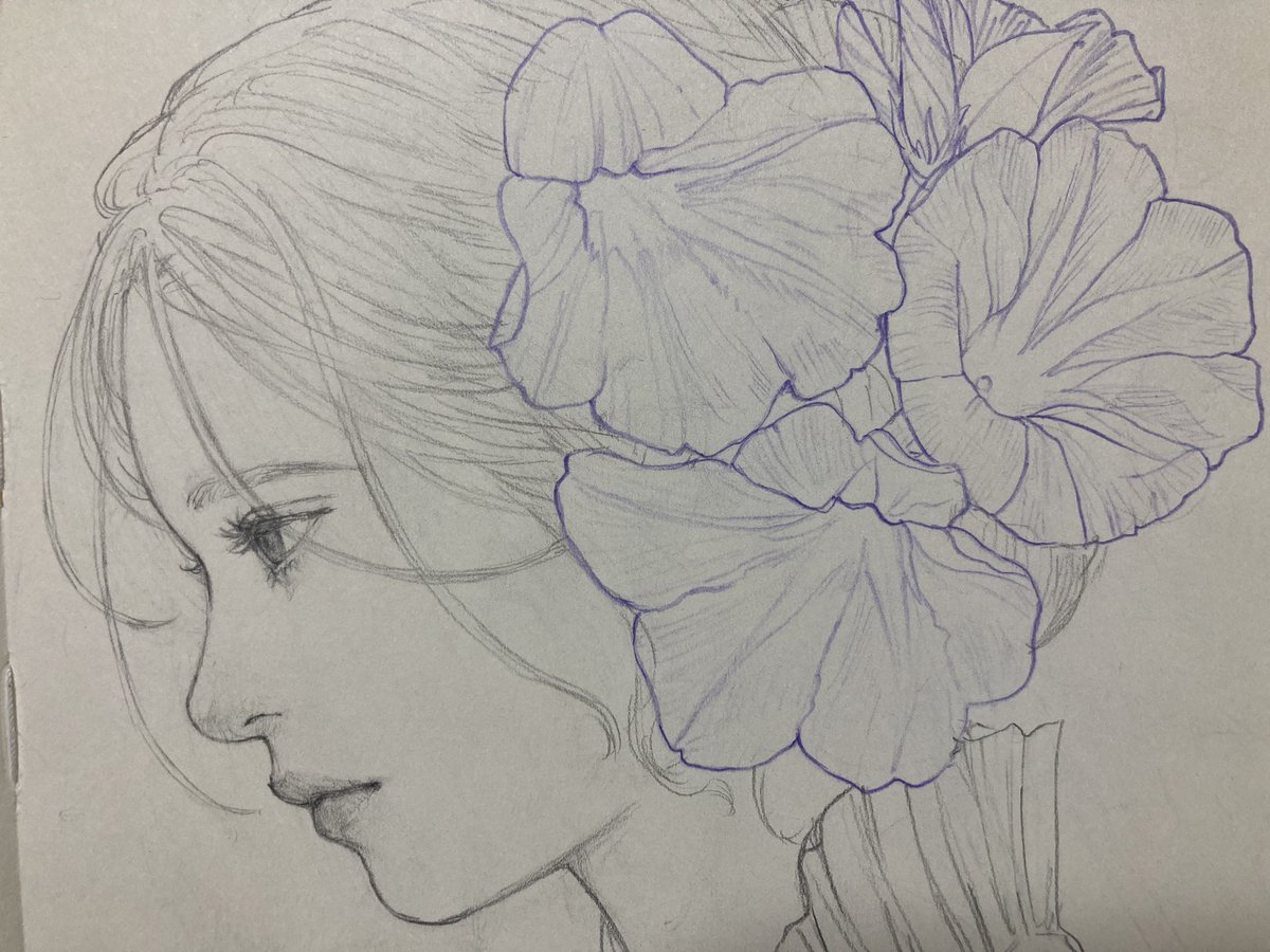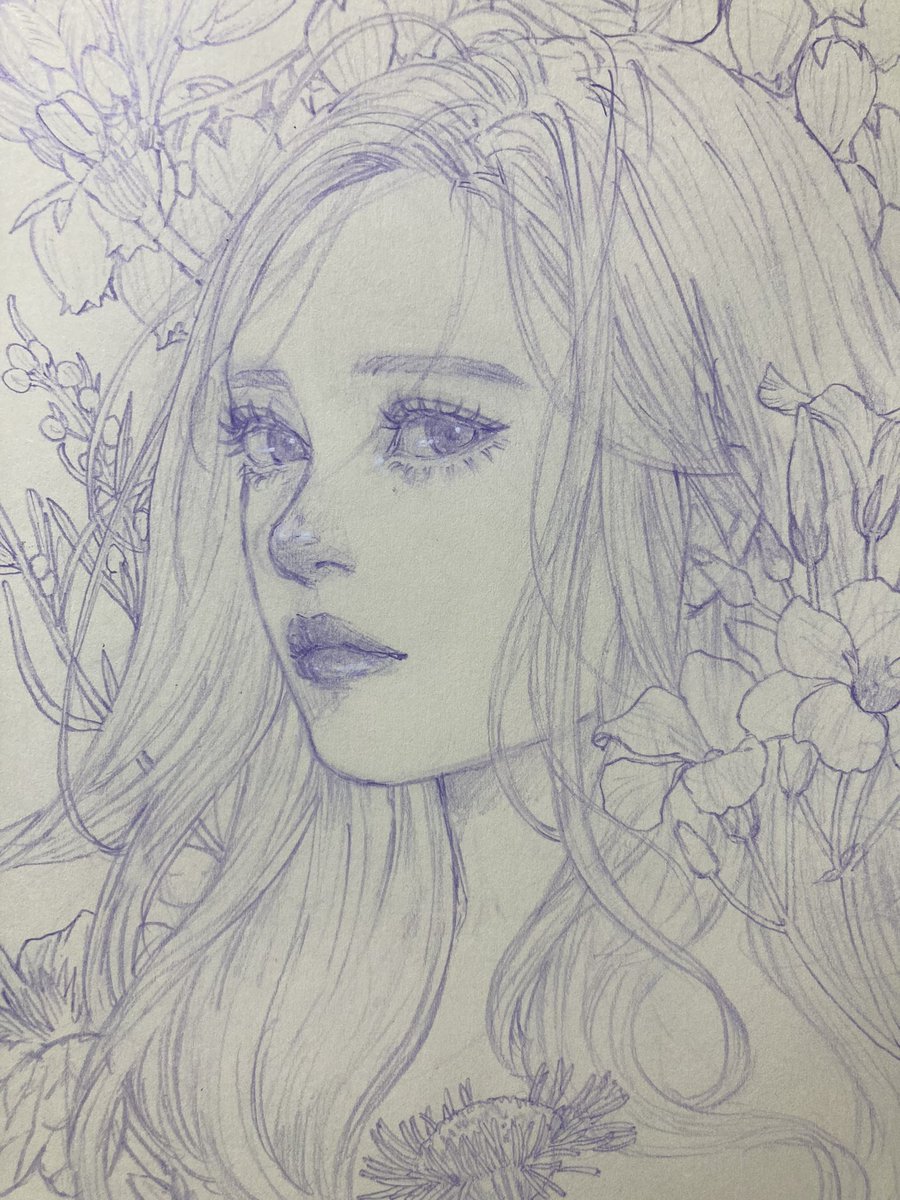 去年撮ったお花の写真を見ながら紫シャーペンで1枚。 #アートクリエーションスケッチブック #カラーイーノ #イラスト #ド直球に言いますがフォローしてください #絵柄好みって人にフォローされたい