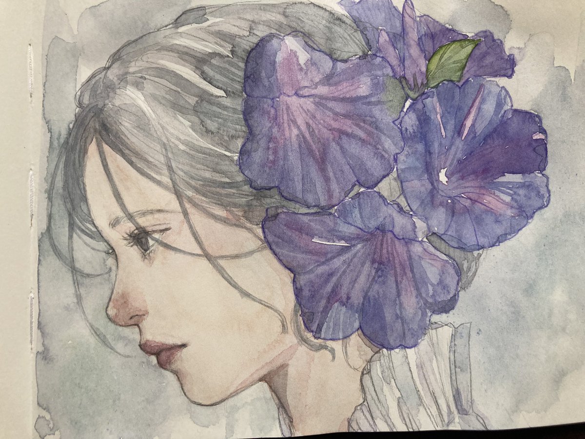 朝顔です😌 アートクリエーションスケッチブックの横長のものに描いています。紙が薄めなのでサラサラっと塗っています 😊 ホルベイン透明水彩の三原色です😌 #透明水彩 #ホルベイン透明水彩 #アートクリエーションスケッチブック #イラスト