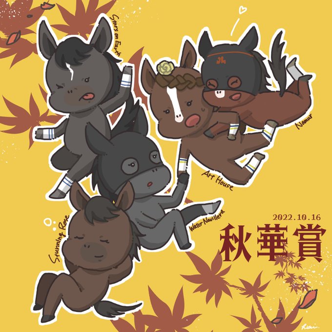 集え!秋の若き乙女達🍁✨ 人馬共に、無事で完走できますよう! #お絵かき #落書き #イラスト #illustration #競馬 #秋華賞 #スターズオンアース #スタニングローズ #ナミュール #アートハウス #ウォーターナビレラ