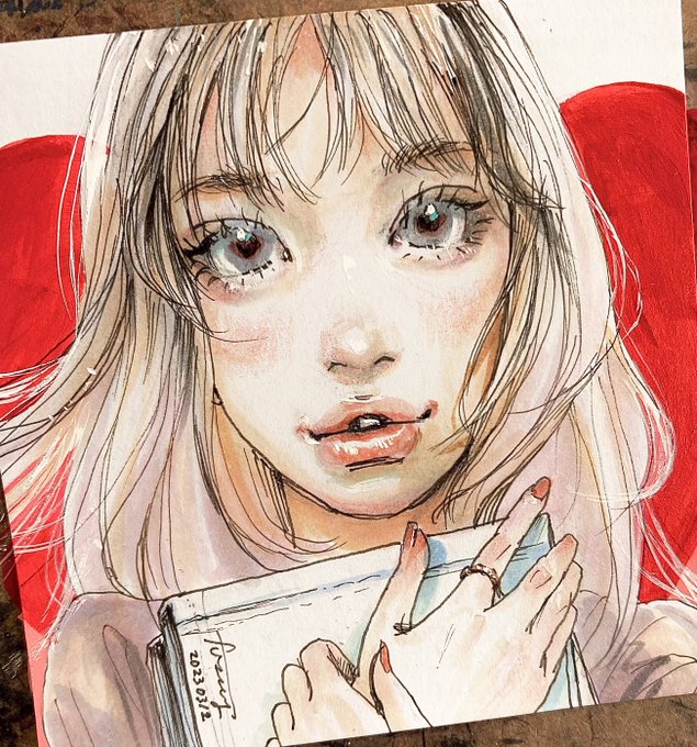 #アートフェア東京2023 週末ラスト2日いい天気です 彼に持たせてるのはそう 付箋girl BOOK よりプライベートな見方ができてワクワクです てまえみそw #イラスト #付箋紙に描いてます