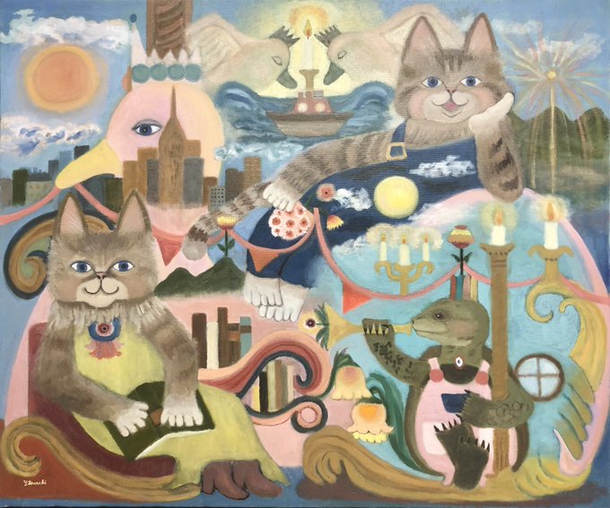 猫の日だー☆ 油絵作品です。 アートメーターさんで、販売しています ☆ art-meter.com/works/?ID=AW15… #油彩画 #油絵 #猫の日 #2022年2月22日 #アートメーター