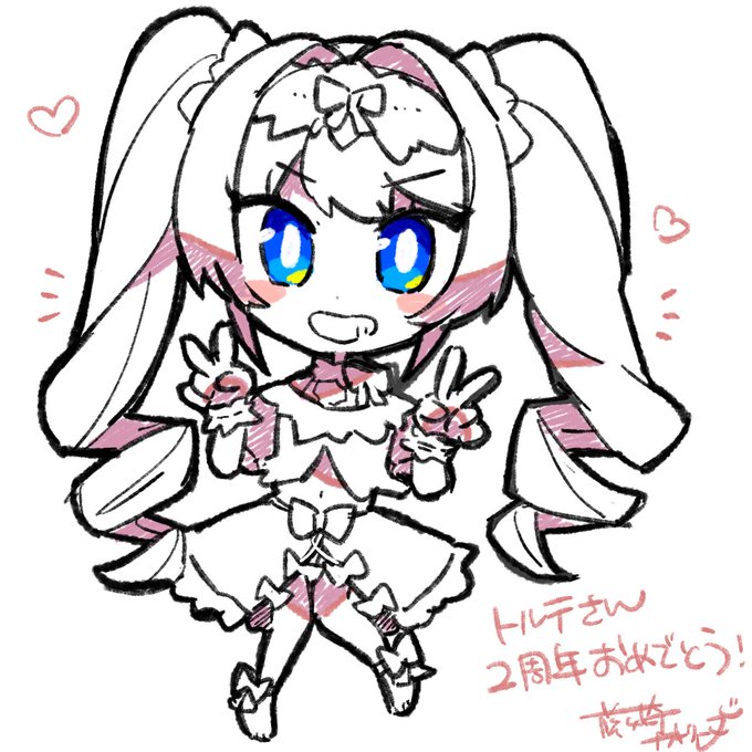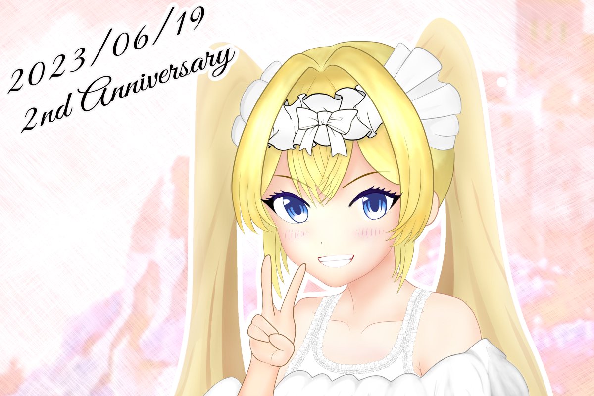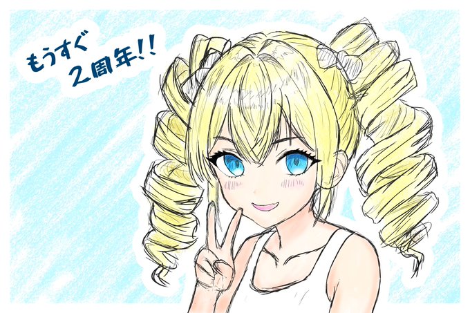 2周年おめでとぉぉぉ!! お嬢の色紙ほしい( ゚∀゚)o彡° 1周年記念で初めて描いたファンアートをリメイクしてみました🎨 3周年ではヘッドドレスやリボン、服も描けるように頑張ります👻💧 #ザッハ・トルテ2周年 #アートルテ