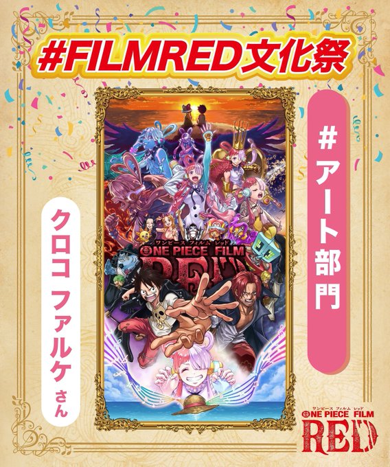 【#FILMRED文化祭 結果発表】 尾田っちとスタッフで厳選を重ね 選ばせていただいたのは…この2組㊗️ 🏆#アート部門🏆 クロコ フォルケさん 🏆#パフォーマンス部門🏆 バケモノバケツ委員会さん ☞ youtu.be/eOUjxDFWT8s 尾田っち描きおろしサイン色紙をお贈りします👏 #ONEPIECE #OP_FILMRED