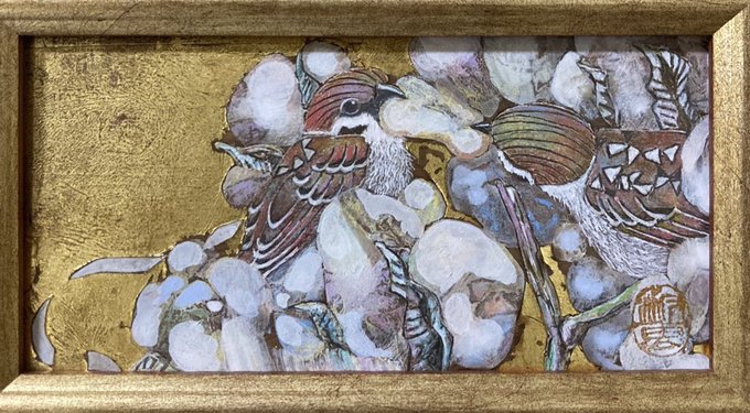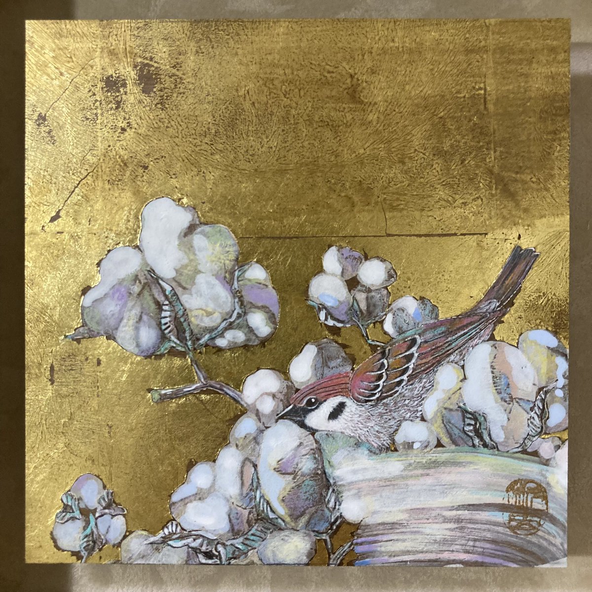 2羽のスズメを描いてみました 綿の花☁️ 154×229mm ミクストメディア こちらの作品はネット販売中です↓ 銀座画廊.jp/artist/成田淑恵/ #アート #スズメ #絵かきさんと繋がりたい #絵 #イラスト #イラストレーター #動物イラスト #アートのある暮らし #アート部門 #美術ネットワーク