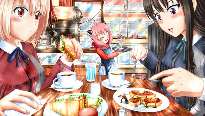 今日のお絵描き 完成 #リコリス・リコイル より #錦木千束 と #井ノ上たきな のティータイム 時間をかけた分念入りに書き込めました😁 今迄で一番時間をかけた作品になったのではなかろうか! #リコリコ #イラスト #純喫茶 #絵描きさんと繋がりたい #art #スパイファミリー #アーニャ・フォージャー
