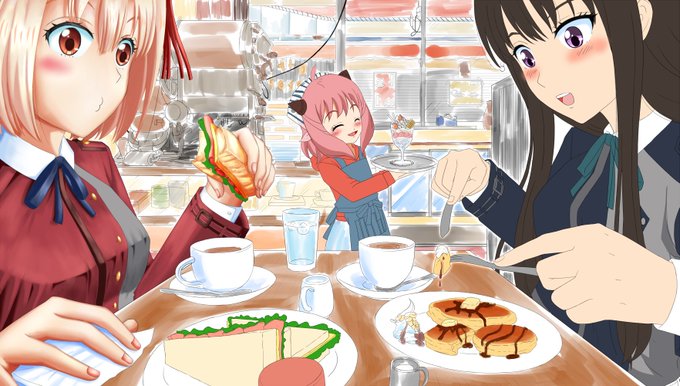 今日のお絵描き さらに続き #リコリス・リコイル より #錦木千束 と #井ノ上たきな のティータイム 今日は塗り途中までです😵💨 #リコリコ #イラスト #純喫茶 #絵描きさんと繋がりたい #art #スパイファミリー #アーニャ・フォージャー