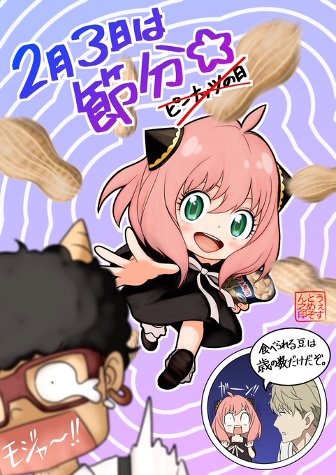 本日2月3日は #節分 ですね 節分と言えば豆まき 私の地元では落花生で豆まきが主流でした と言う訳で落花生(ピーナッツ)で豆まきするアーニャさん描きました❤️ #節分の日 #スパイファミリー #アーニャ #アーニャ・フォージャー #アーニャかわいいよアーニャ #豆は歳の数