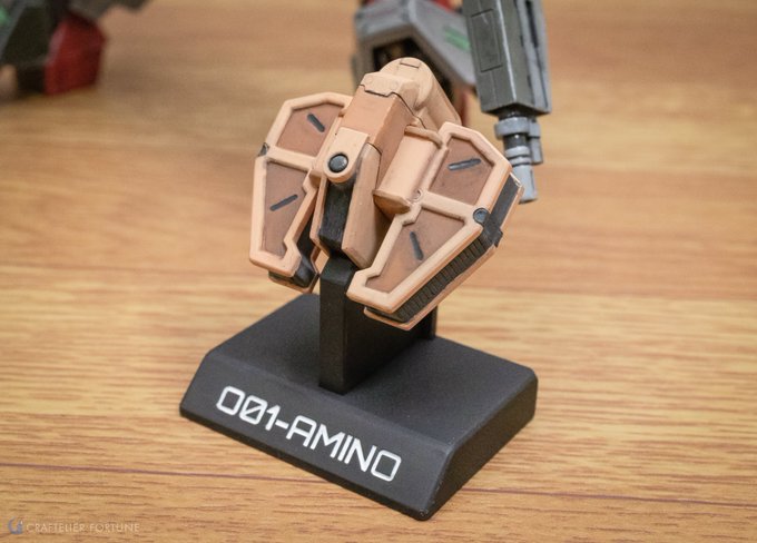 WF2023夏にてStudio Simplexさん(@noble_six_312 )から販売予定のOPパーツコレクション O01-AMINOのサンプル作りました! 3D造形なのでカッチリな出来で最高だ。 凝ったスタンド付きなのでみんなも愛機の横に並べて実弾防御を強化しよう! #アーマードコア #WF2023S twitter.com/noble_six_312/…