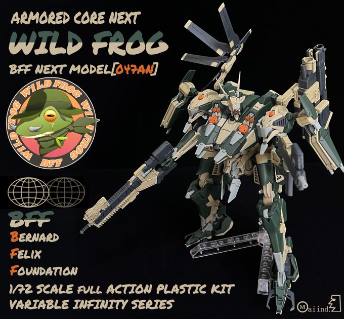 #アーマードコア25周年 おめでとうございます。これ以外にも作例でたくさん作らせていただきました。外伝作品やオリジナルカラーでの商品化に携わらせてもらったり。どの機体も立体映えするので作るの楽しいです☺️