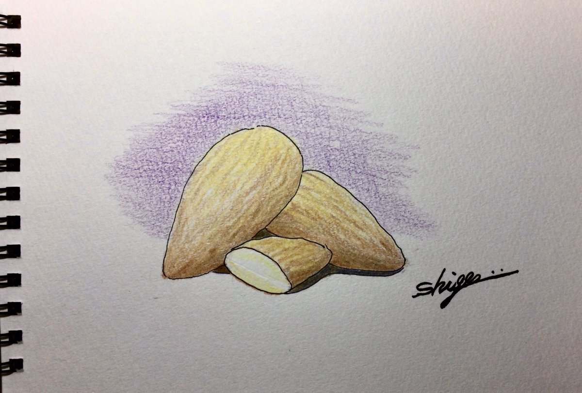 〜アーモンド〜 今朝も色鉛筆を使って、アーモンドを描いてみました。アルコール類のおつまみとしても、コーヒーや紅茶のお茶受けとしてもよく合いますよね。 #色鉛筆画 #食べ物 #ナッツ類 #アーモンド #絵を描いている人と繋がりたい #絵が好きな人と繋がりたい