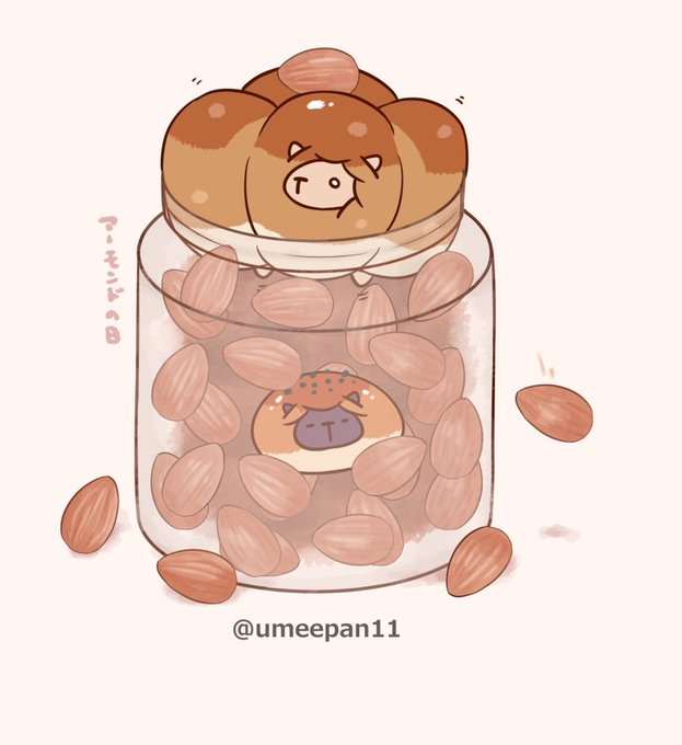 本日は「#アーモンドの日」ですよ♪ アーモンドの1日の適量は20〜25粒なんだって。 意外とたくさん食べていいんだ! #イラスト #今日は何の日 #絵描きさんと繋がりたい #イラスト好きさんと繋がりたい #ゆるいイラスト #illustration