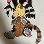 #一日一絵 #毎日絵一枚上げる #イラスト #色鉛筆画 #オリキャラ #イラスト好きな人と繋がりたい #絵描きさんと繋がりたい #アーモンドの日 アーニャアンモキュウ アーモンドが好きな猫の獣人 サビ猫のような柄であり賢くて人懐っこい性格 よくまーんまっやにゃーと鳴く