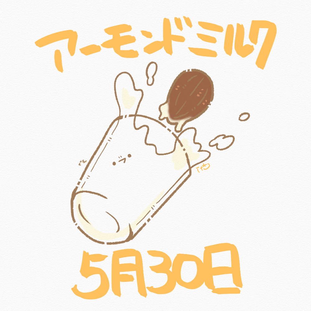 #アーモンドミルクの日 🥜🥛 アーモンドは5月下旬から実がなり始めることと、「実(3)が丸(0)くなる」の語呂合わせから制定されました。 アーモンドミルクの原料は 水とアーモンドだそうです😳 #今日は何の日 #オリジナルイラスト