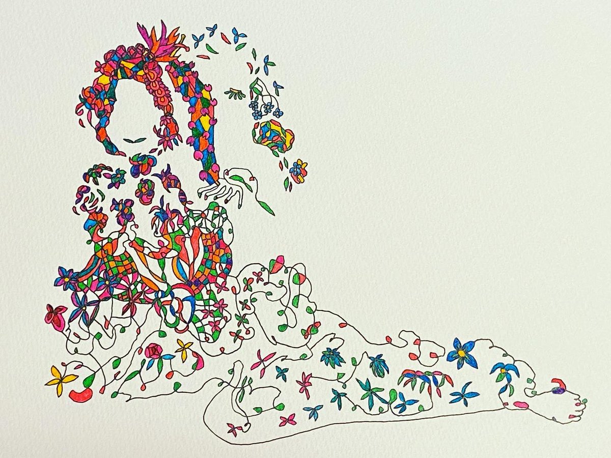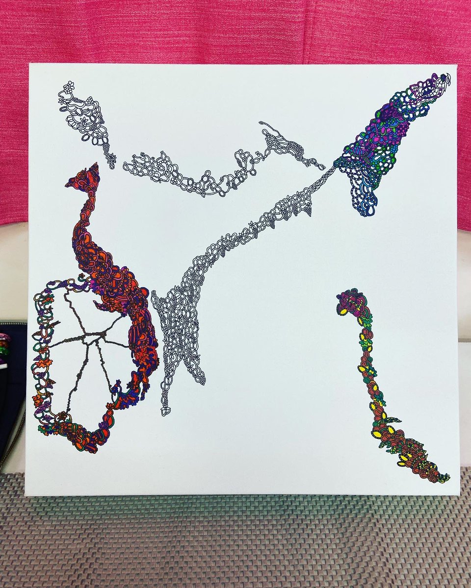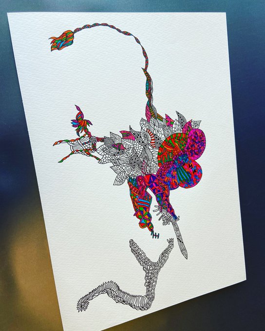 今日はこんな絵を描いています🫶🏻 120色色鉛筆をプレゼントしてもらったのでそれで描いていますが共感覚で選ぶ本数も増えるので余計疲れます💦この絵が描き終わったら本数を減らそうかな😌 #障がい者アート #絵描きさんと繋がりたい #アール・ブリュット #共感覚