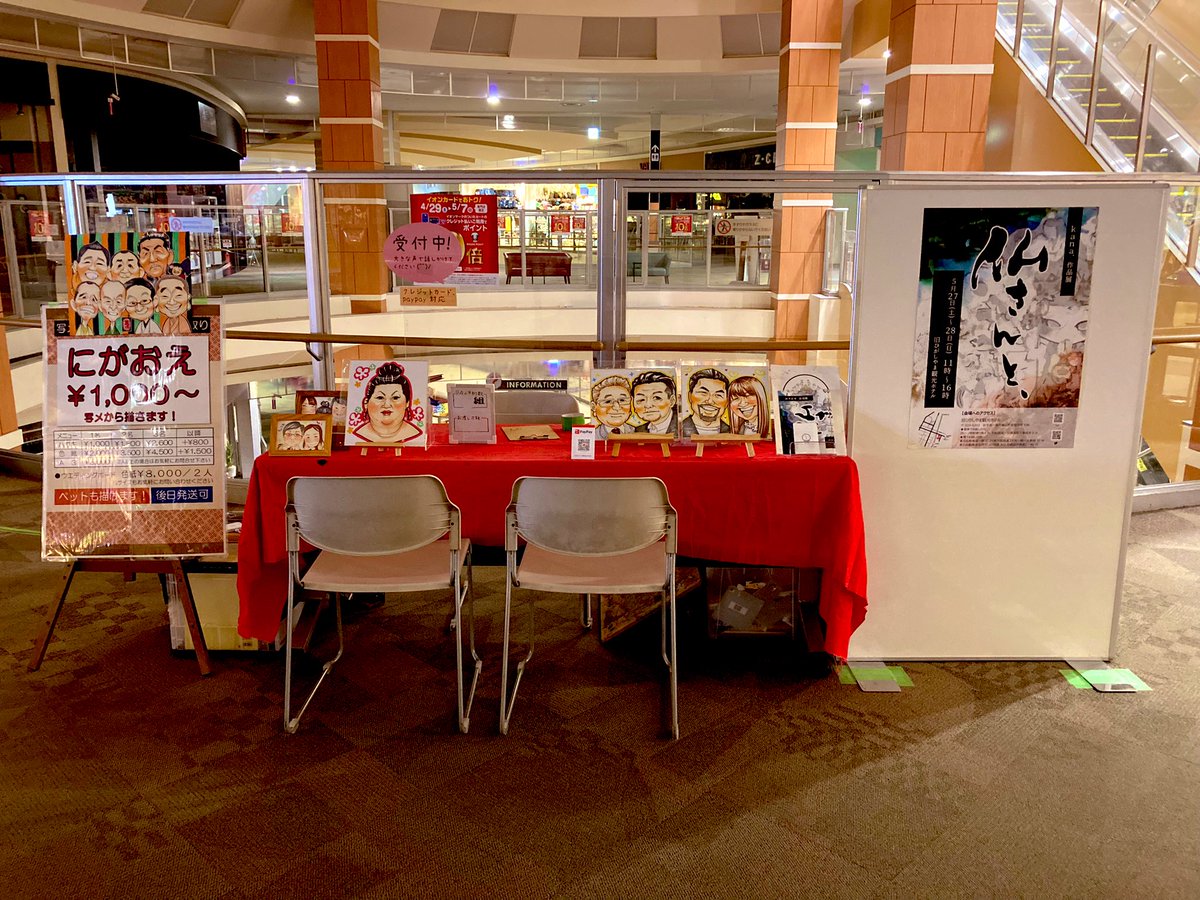 準備できましたー! 開店まであと1時間もあるぅ こんな感じで個展のお知らせもしております〜! あと今回色紙用の額を3種類用意していますのでご入用の方はお申し付けください☆ #イオンモール盛岡南 #似顔絵 #3階フードコート前