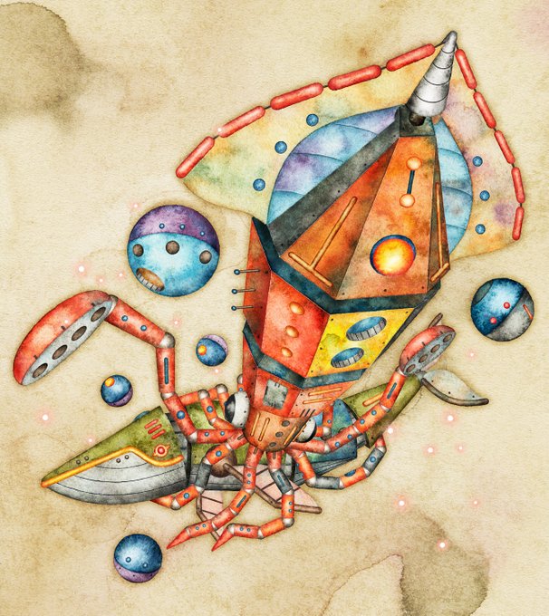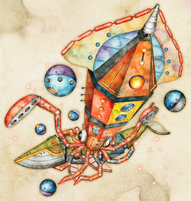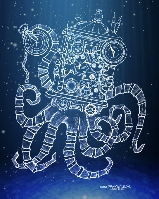 お疲れ様でした✨✨ 良き週末をお過ごし下さい♪♪ ⚙イカタンク⚙ #スチームパンクイラスト #歯車イラスト #ペン画 #イカ #絵師さんと繋がりたい #アトリエの系譜plus #アトリエの系譜S