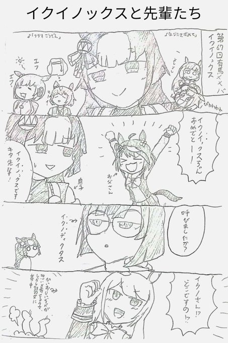 第67回有馬! #イクイノックス ちゃん! 幻覚はたぬきより #ウマ娘プリティーダービー #ウマ娘 #幻覚ウマ娘 #キタサンブラック #キングヘイロー #サクラバクシンオー #サンデーサイレンス #絵描きさんと繋がりたい #絵柄が好みって人にフォローされたい