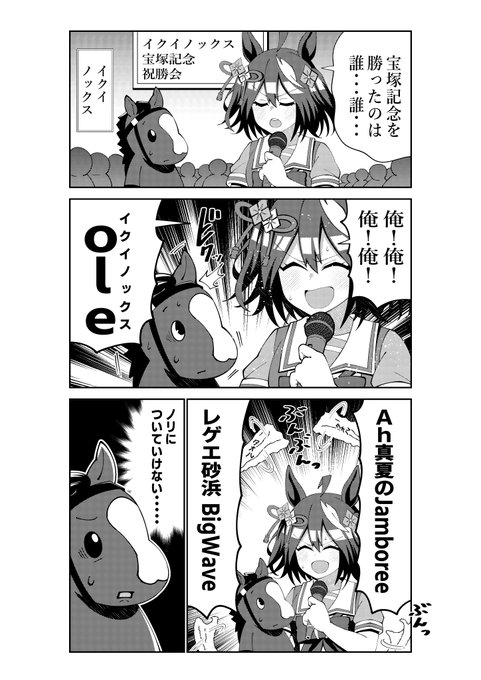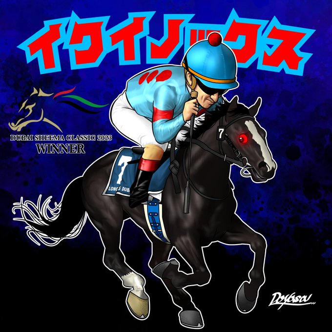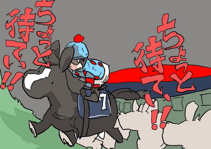 ナイスファイトに感動して話しかけに行くイクイノックス 池添さんとの時間なにしてくれんだ女子のスルーセブンシーズ (私が描く池添女子のみなさんはなかなかメリハリがひどい) #スルーセブンシーズ #イクイノックス #宝塚記念