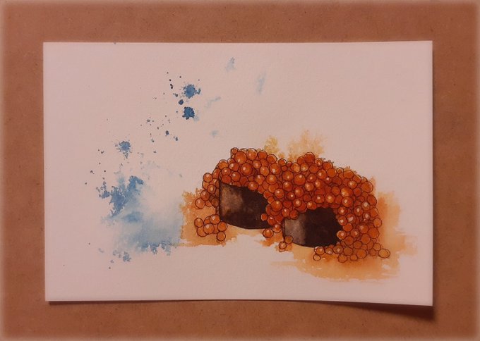 #イクラ と #ウニ をたべる前に描いてみました‼️早く食べたい‼️ #イラスト #アトリエの系譜S #イラスト練習中 #analogart #イラスト好きな人と繋がりたい #絵描きさんと繋がたい #art #軍艦巻き #お寿司 #色鉛筆画