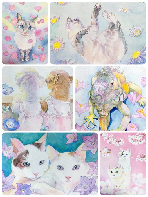 #今月描いた絵を晒そう 6月はご依頼絵と展示会に向けた作品を描きました。いいね、リツイートいただきありがとうございます🥰 #絵描きさんと繋がりたい #オーダー #ご依頼 #愛猫 #愛犬 #イグアナ