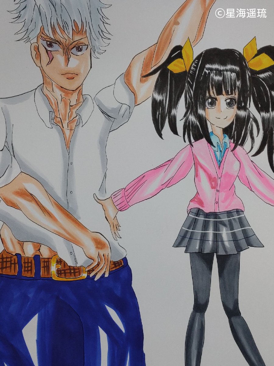 【この子は俺が守るぜ‼️】 ヤンキー系の強面なルックスなオリキャラが人見知りで大人しい性格の女の子と付き合っているという‼️ ギャップ萌えな恋(*≧∀≦*) #絵描きさんと繋がりたい #イケメンと思ったらRT #オリキャラは性癖の見本市 #私の絵柄が性癖に刺さる人に届いてほしい #コピック