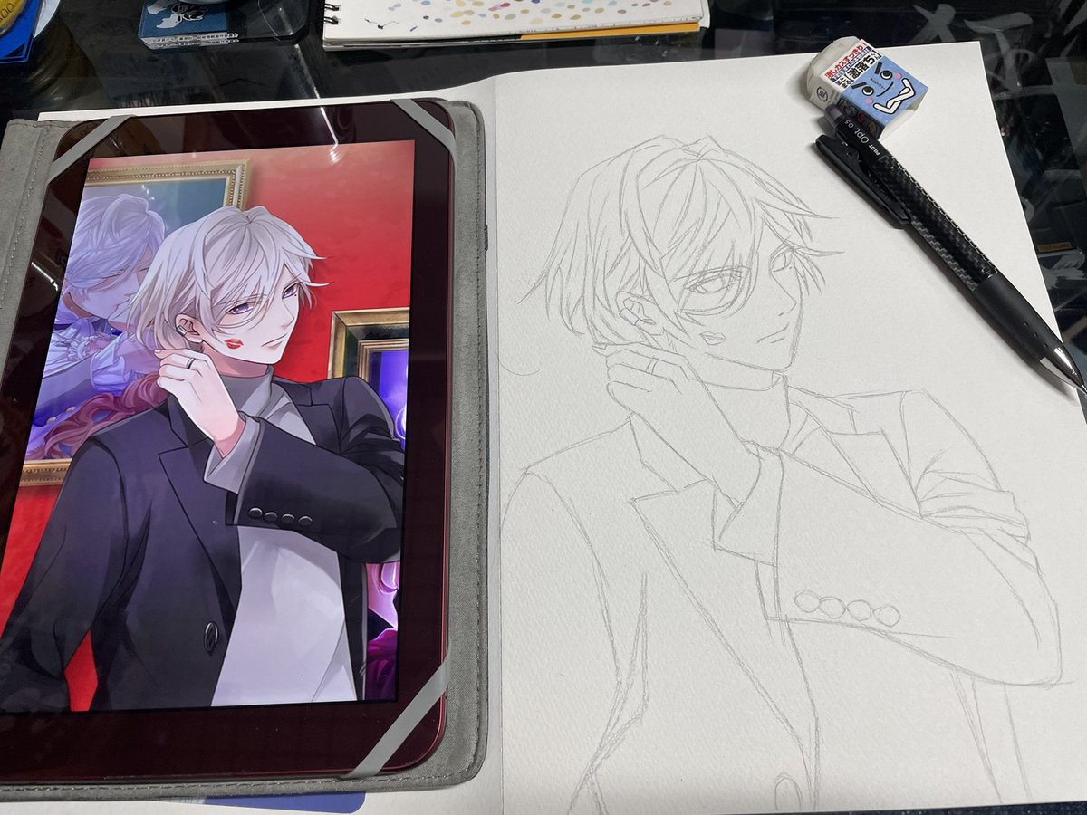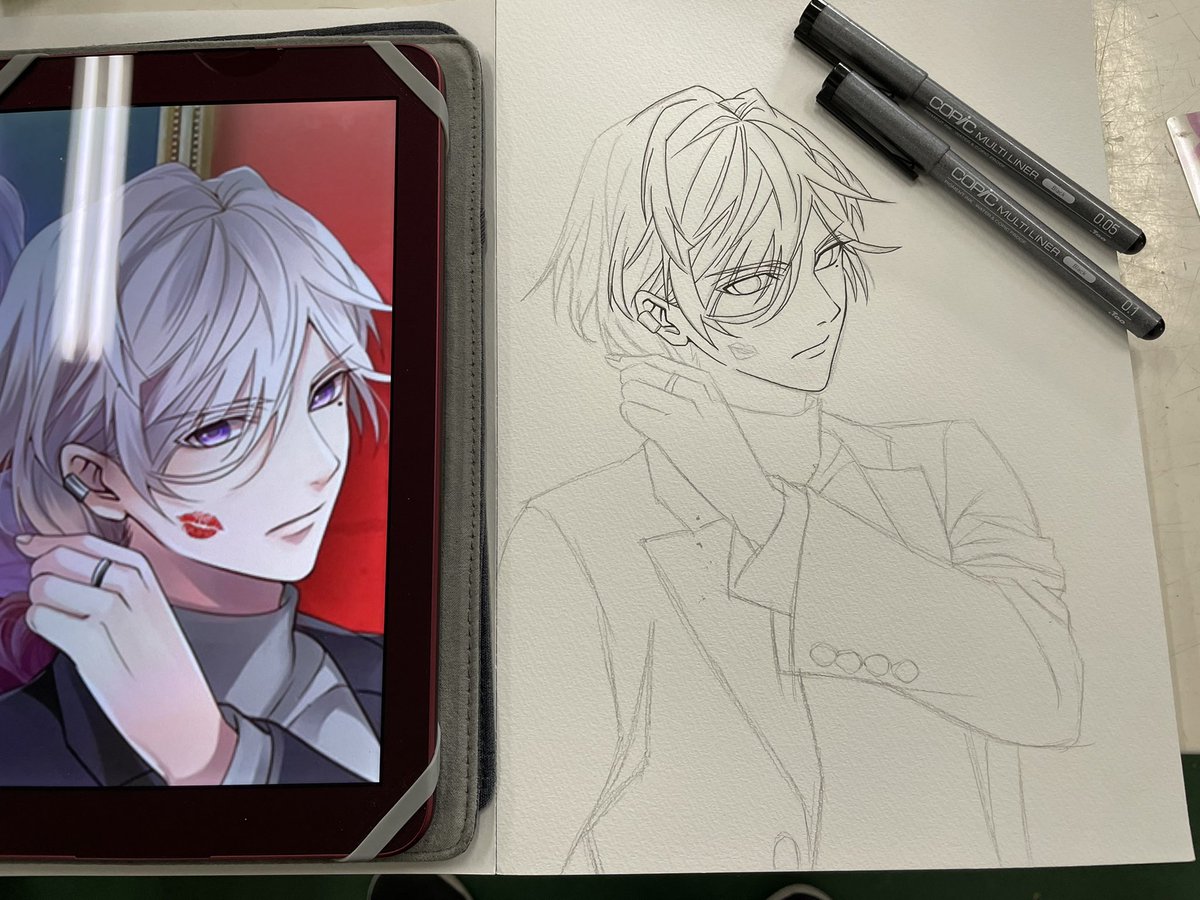 ウトウトしながら下描き2枚目! モーツァルトひと段落したんでちゃんと寝ます! おやすみ世界!! #イラスト #模写 #イケメンヴァンパイア #モーツァルト #イラスト拡散 #フォロワーさんの推しを描きたい #フォロワーさん増やしたい
