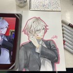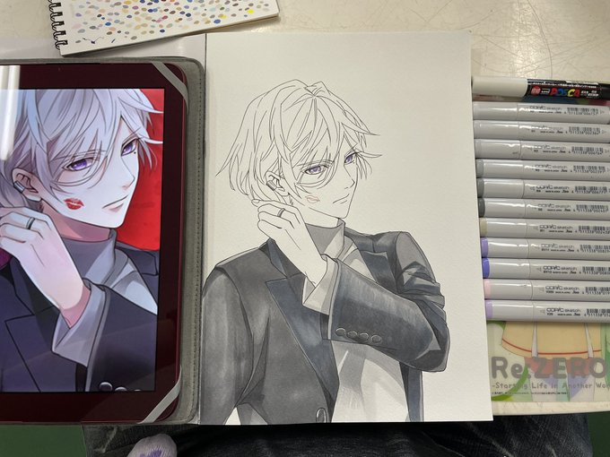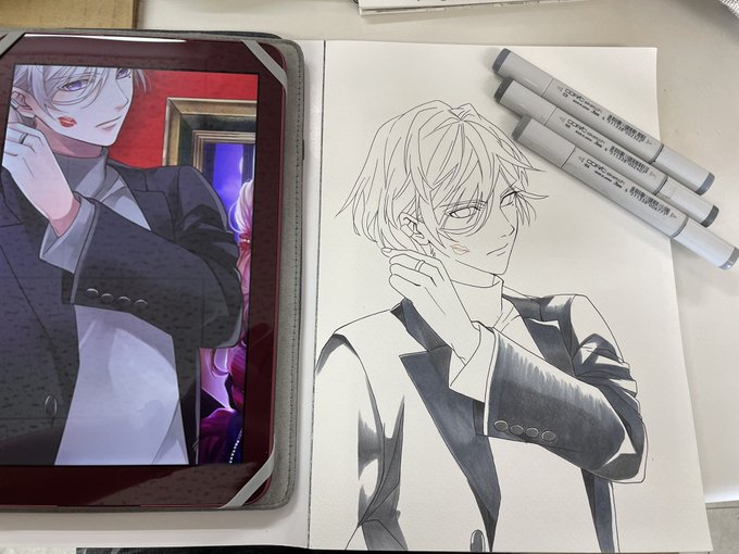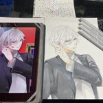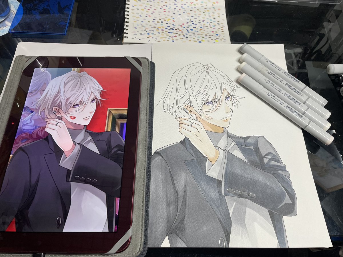 今朝のモーツァルトさん!! グレーの混色に迷い中!! #イラスト #模写 #イケメンヴァンパイア #モーツァルト #イラスト拡散 #フォロワーさんの推しを描きたい #フォロワーさん増やしたい