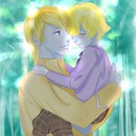 パパ&息子絵完成ですら~✨ 勇退したエーリクからマティウスがデスラー家を継承したおめでたい日、という設定です❣️ #クラウス・キーマン #マティウス・デスラー #絵描きさんと繫がりたい #世界絵師 #透明水彩 #アナログイラスト #イケメン保存委員会