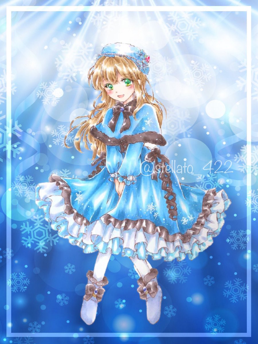 出遅れてしましました💦 アリスちゃんで今回初めて参加させていただきました✨ ふんわりしたケープとか似合いそうだなぁと思って描いてみました😌ところどころに雪の結晶も舞ってます。 描いててとても楽しかったです。ありがとうございました✨🌸 #クレイドルコレクション #イケメン革命 #イケレボFA