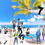 クレイドルコレクション 2022開催❣️ 春・夏の集合絵です🌸🌻 春は青空の草原🍀 夏は透き通る海のビーチ🏝 に、それぞれ集まってもらいました☺️ #クレイドルコレクション #イケメン革命 #イケレボFA