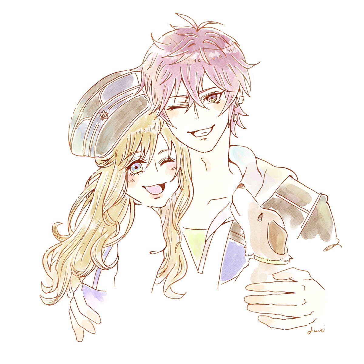おフェンBDまであと1日!!!! カウントダウンラストはサイコーに幸せなおフェンとアリスちゃんの過去絵で!!! BD当日もサイコーに幸せにするぜ!!!⸜(* ॑꒳ ॑* )⸝♡ #最高のバカ騒ぎヤってやろーぜフェンリルBD2023 #イケレボFA