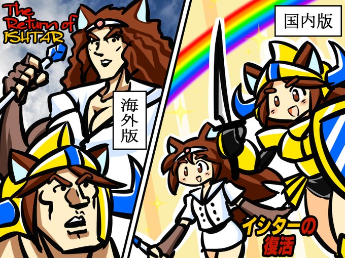 アンケート頂けた皆様アリガトゴザイマス! レトロゲームのメインヒロイン、ということで。 #イシターの復活37周年 ってことなのでメインヒロインのカイちゃん描いた。 クエストオブカイ時代の華麗なハイジャンプをキメようとして低くなった天井に頭ぶつけたお茶目な姿を。 #イシターの復活 twitter.com/ryuhi_misaki/s…