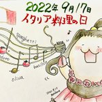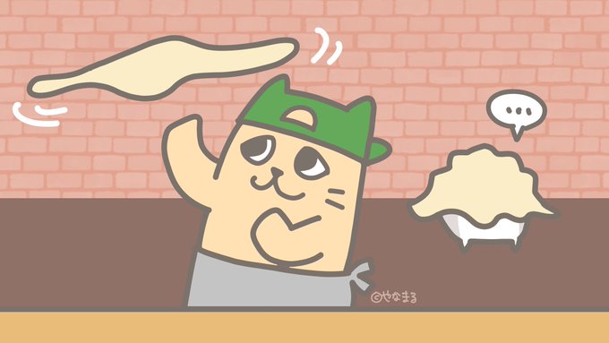 本日は「#イタリア料理の日」ですよ♪ 超絶テクニックのピザ回しをご覧あれ。後ろは包み焼きピザかな? #イラスト #今日は何の日 #絵描きさんと繋がりたい #イラスト好きさんと繋がりたい #ゆるいイラスト #illustration