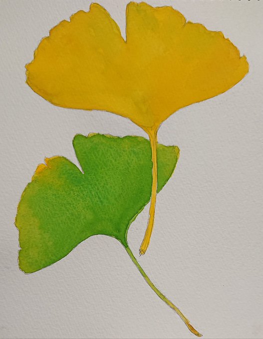 こんにちは✨WANOEです☆ イチョウ 制作過程 (水彩画) F 0号 スケッチブック 画用紙・鉛筆・不透明水彩 だいぶ散ってしまいましたが 黄色の絨毯は美しい〜☆ #絵描きさんと繋がりたい #イチョウ #水彩画 #artwork #watercolorpainting #アート好きな人と繋がりたい #クリエイターの輪 #日本画