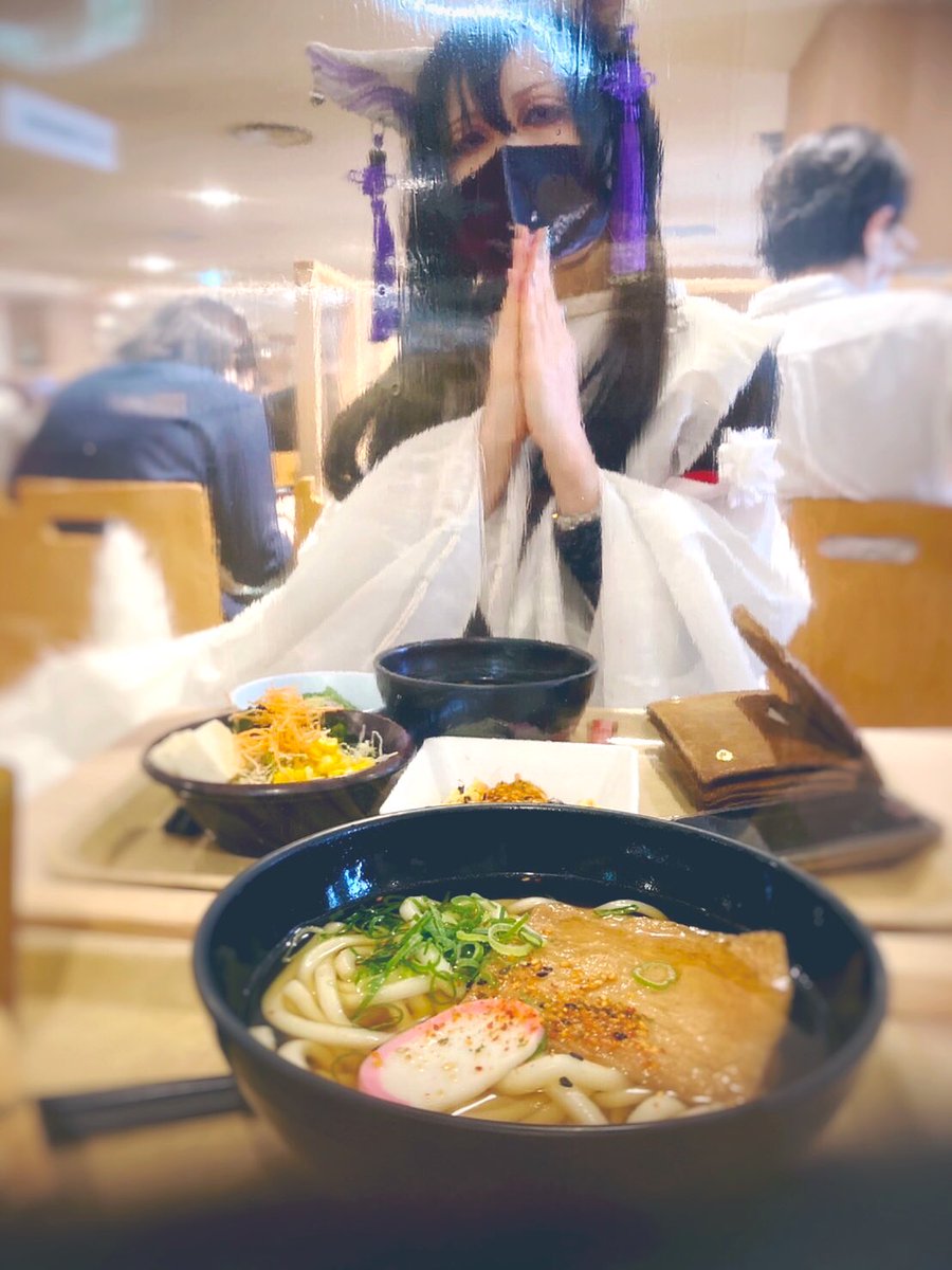 一緒に催事に出ていた奏音たんに 「私‼︎今日は狐うどん食べるの❗️」 「だから‼︎一緒に食べようね‼️」 ‥‥…と誘われた狐の図。 『私のどんぎつねさん📸』だそうです‥‥かのたん遊びが可愛い過ぎる。 #イッツア妖怪ワールド