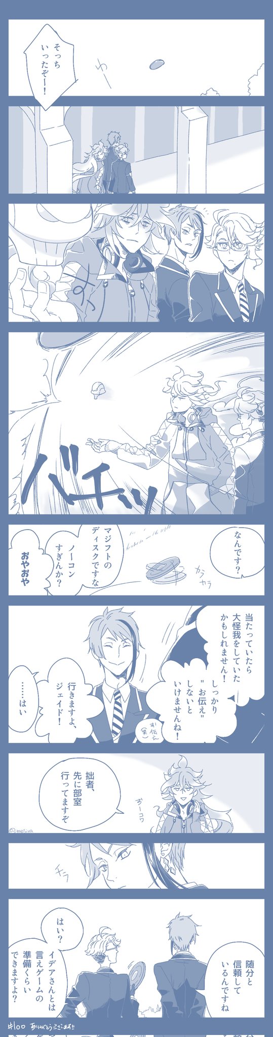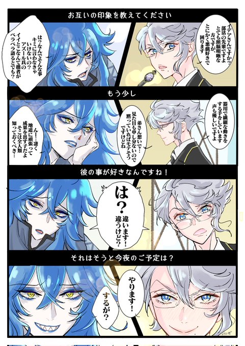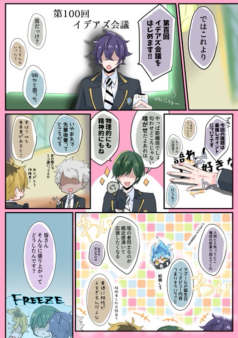 #イデアズ版深夜の60分一本勝負 お題【イデアズの1番好きなところ】 ㊗️100回!🎉🎉🎉 いつもありがとうございます✨ お題、この前丁度呟いてたので(元ツイ)、仏゛部モブにイデとアズにインタビューさせてみた。アイツこの後熱出したってよ。 twitter.com/krkgwks/status…