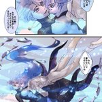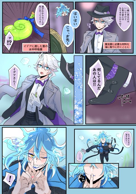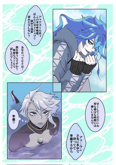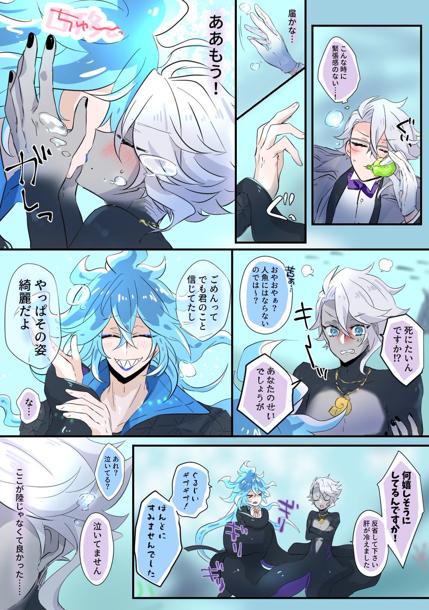 #イデアズ版深夜の60分一本勝負 「水中」 めっちゃくちゃオーバーしています(土下座) 付き合ってる💀🐙 水中でキスさせたいが為に色々詰め込んだら収まりがつかなくなりました 🐙ちゃんは褒められて嬉しいのもあるけど、海は怖いので💀くんピンピンしててホッとしたのがでかいですね