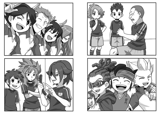 #イナズマイレブン #イナイレ絵描きさんと繋がりたい イナズマイレブンシリーズより ギュエール、ジャン、スティア、コブラ、原野愛 繋がりたいタグはせっかくだし見ていただきたくつけました。色々なシリーズキャラに別作品のユニフォーム着せましたが・・・黒、多いな。