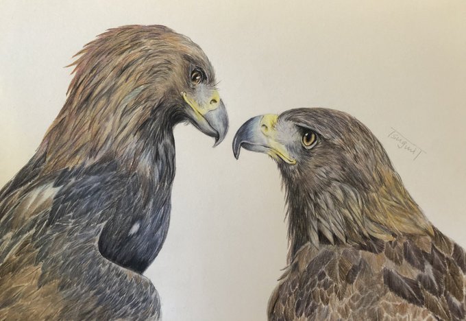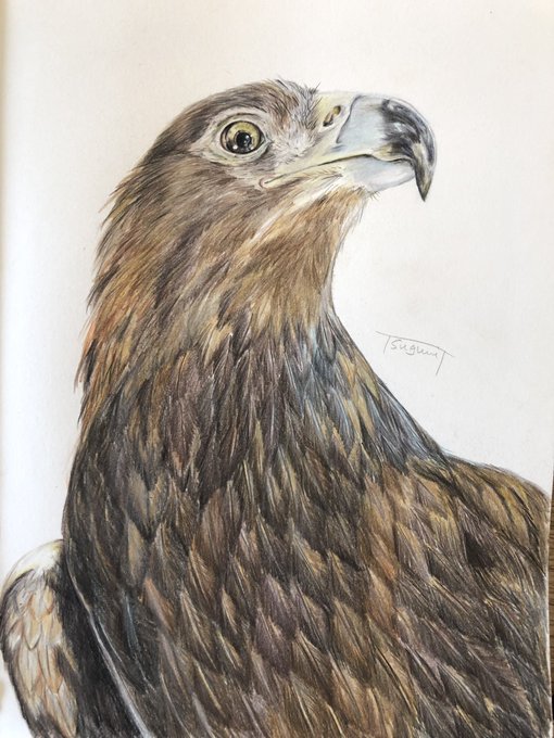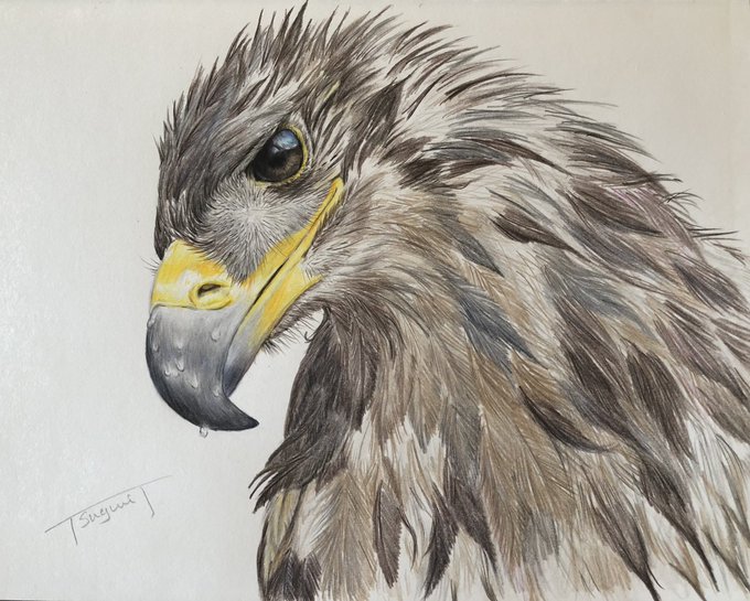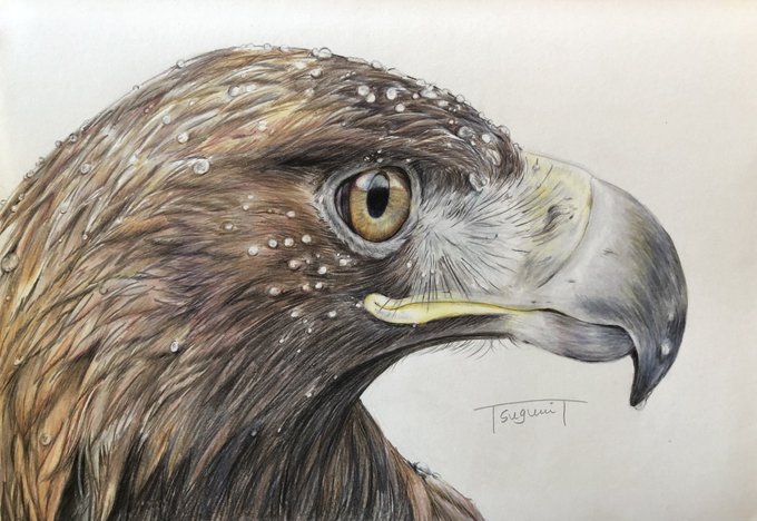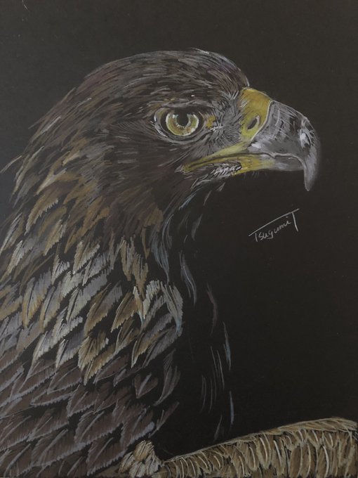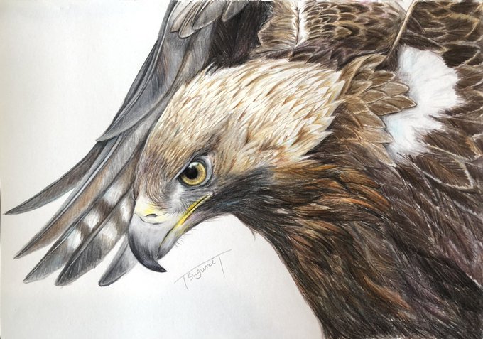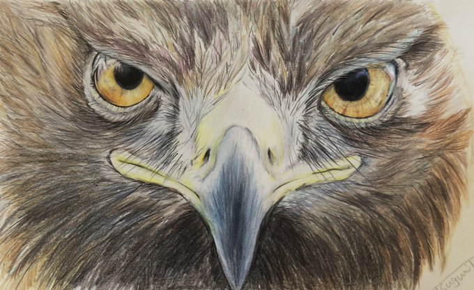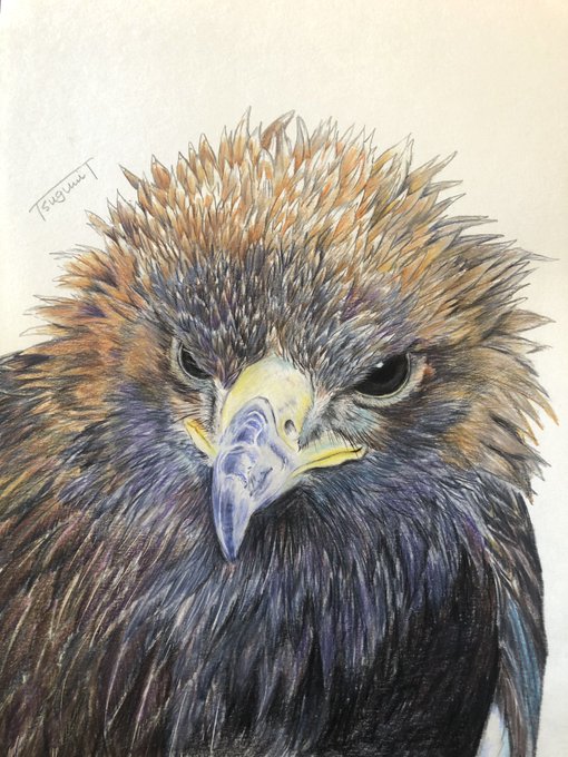 Golden eagle 今、此処に おはようございます。 #イヌワシ を描きました。 どなたかの心に響けば嬉しいです。 楽しい土曜日になりますように🦅 #絵描きさんと繫がりたい #色鉛筆