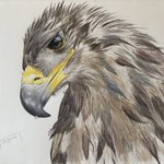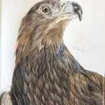 #絵描きさんと繋がりたい Golden eagle 真贋 こんにちは。 今日の隙間時間で描き終わりそうだなあと思って朝の投稿スキップしたらおかしな時間に。 #イヌワシ 漸く描き終えました。 超どアップ。笑 素敵な夜を😌