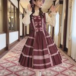 Innocent World新作 ビクトリアンバッスルJSK 野に咲く薔薇のブラウス モカ×ショコラ/ショコラ×ショコラ グリーン×ショコラ/生成 #イノワ新作 twitter.com/i/web/status/1…